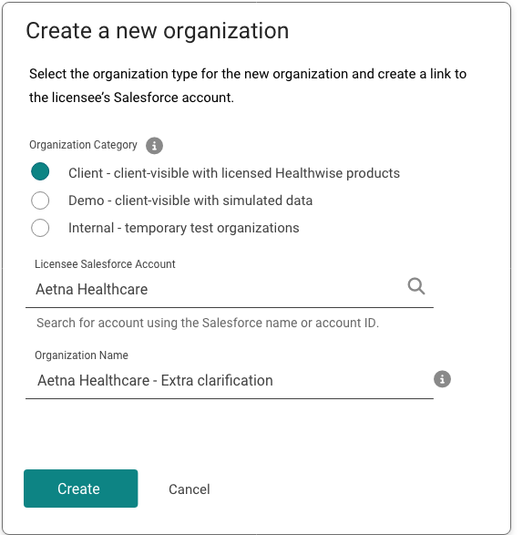 An Organization is a client’s identity within the Platform. Every client that directly licenses Healthwise products from us is represented as an Organization. The Organization serves as a bridge to link our runtime environment to our business systems such as Salesforce.